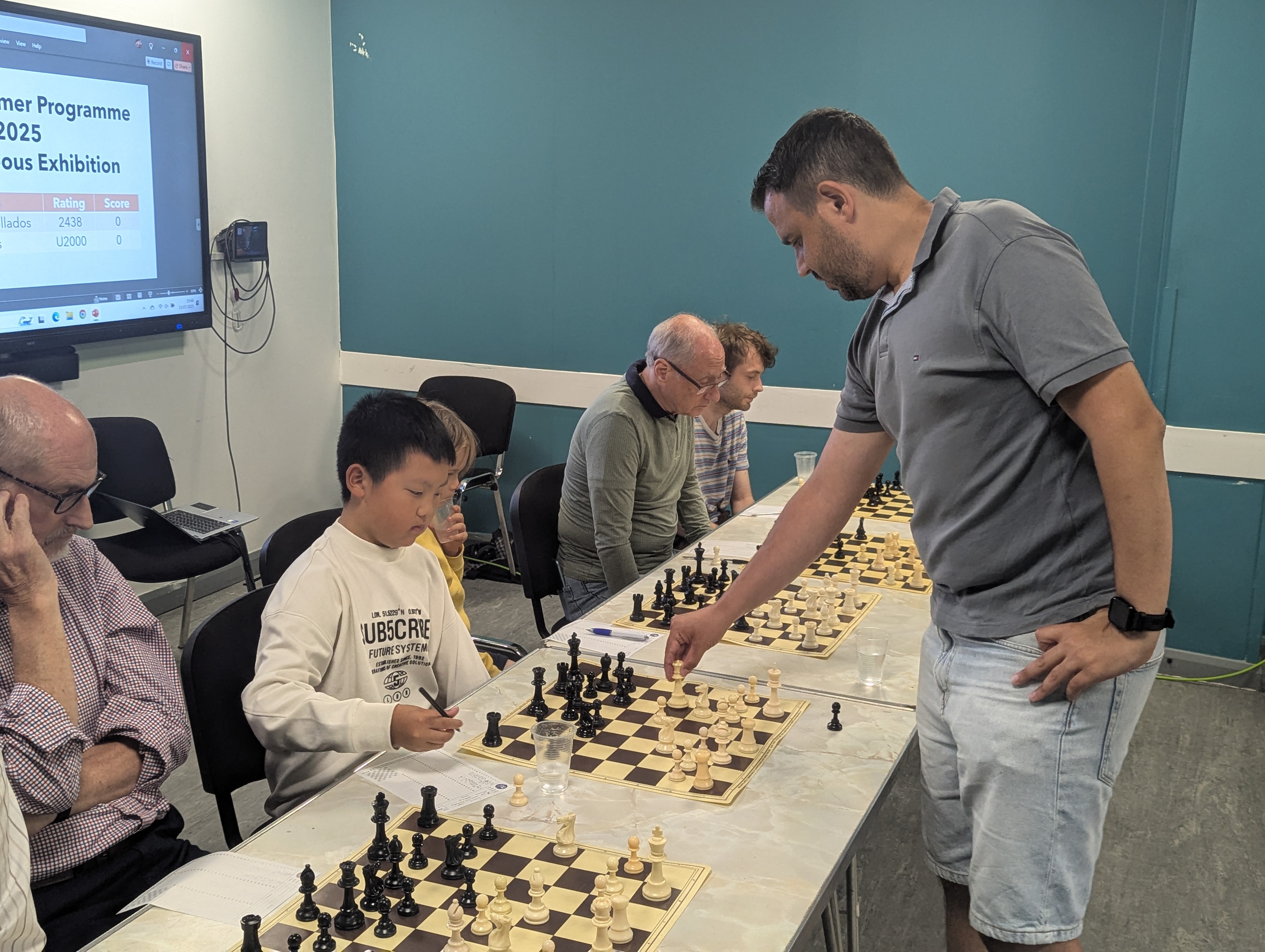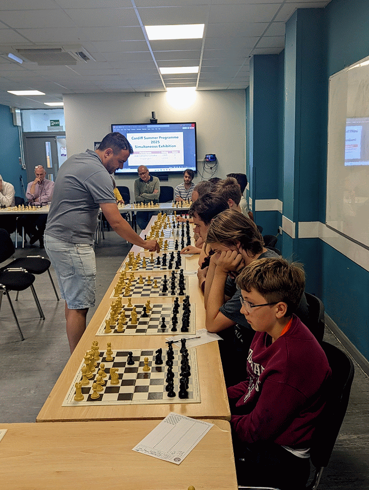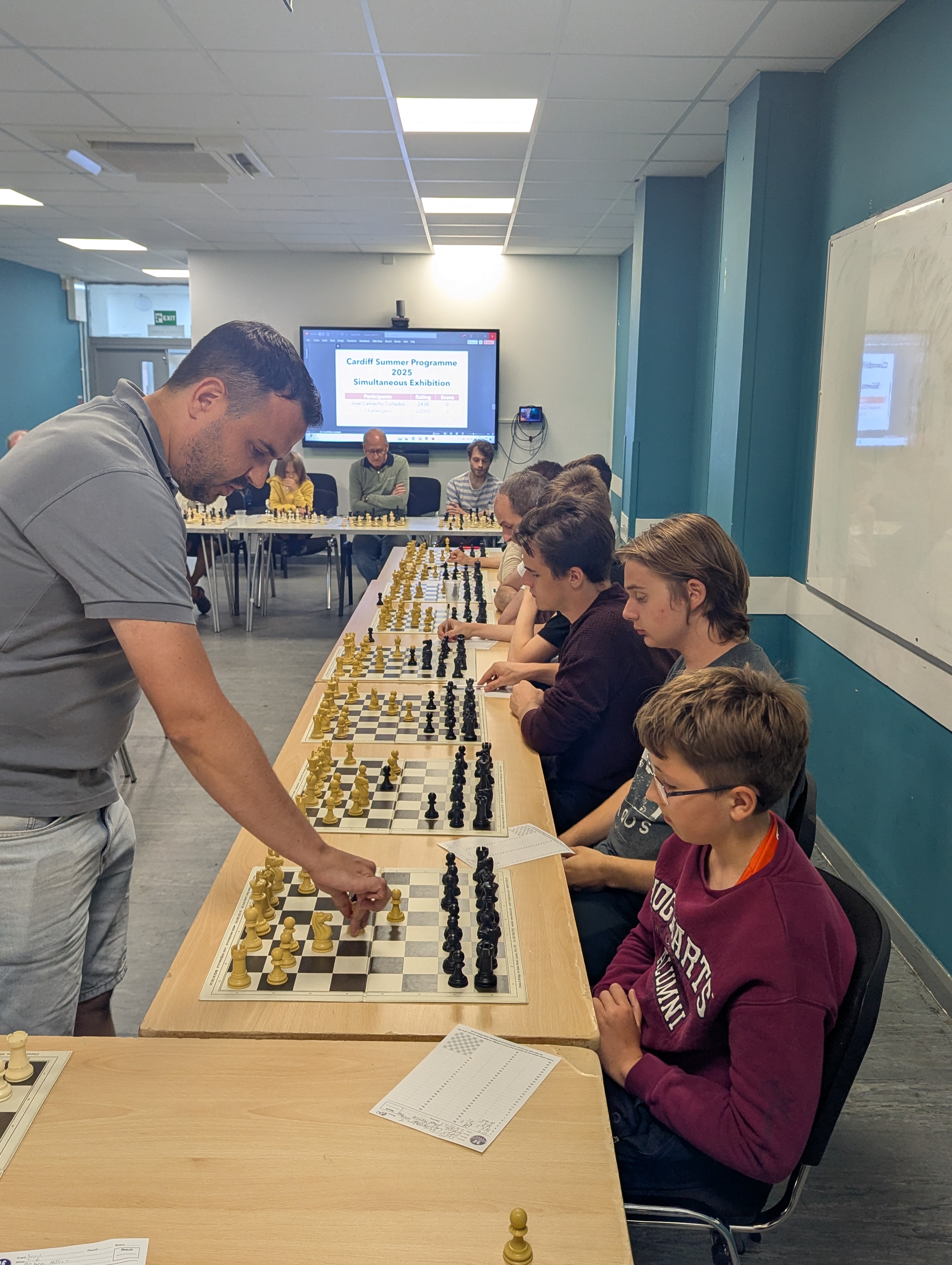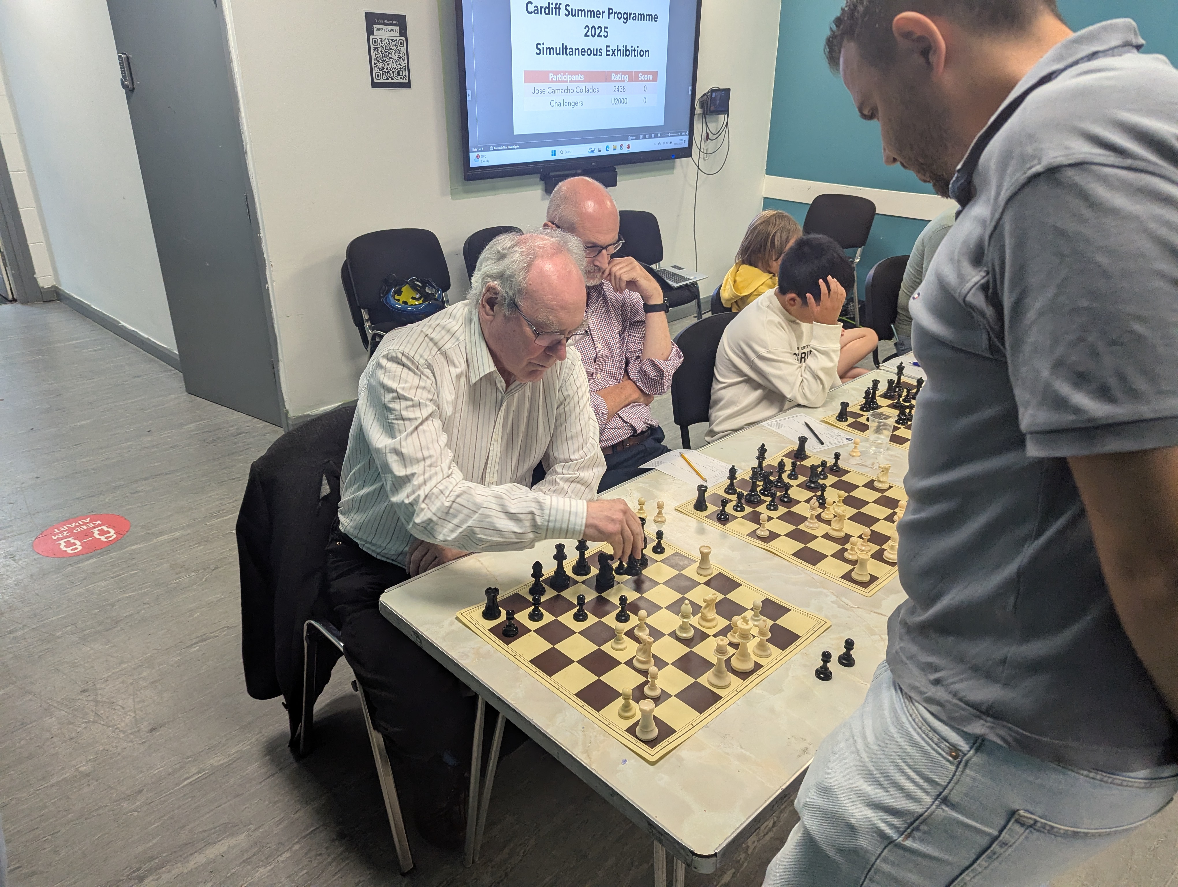 In this year’s 2025 Summer Programme, we have once again hosted a simultaneous exhibition with IM Jose Camacho Collados. Jose is currently the highest rated player in Wales in both FIDE and WCU ratings. As of April this year, he is also now the Welsh Champion!