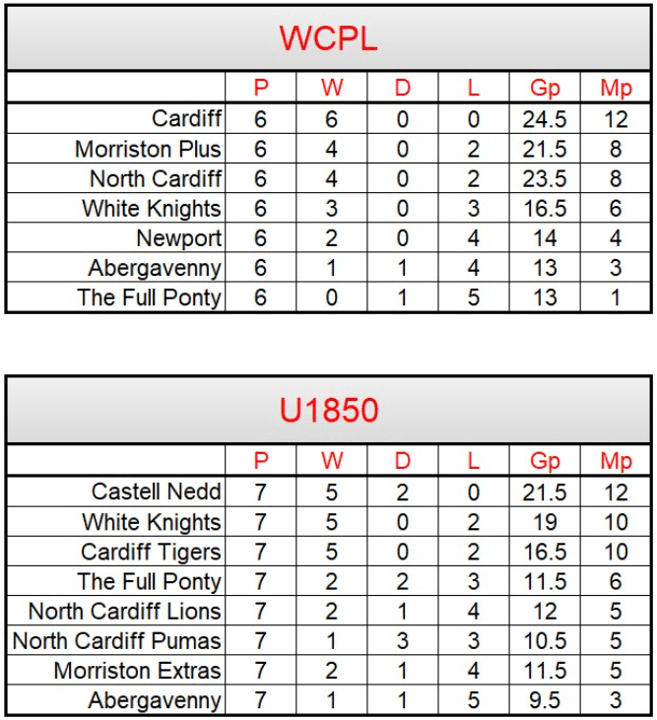 The WCPL also hosted an U1850 section which Cardiff also had a team called Cardiff Tigers. Cardiff Tigers finished in a respectable 3rd. The below tables show the final standings in the WCPL Main and WCPL U1850 sections.