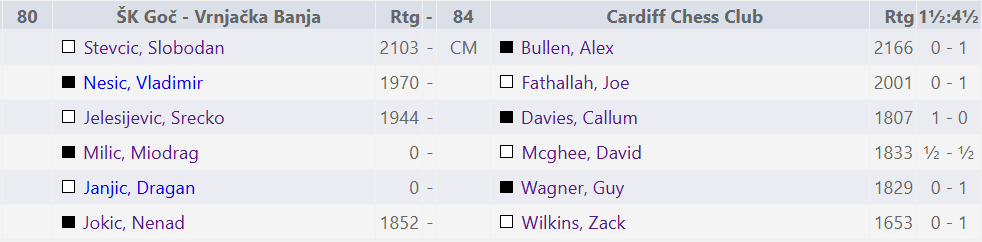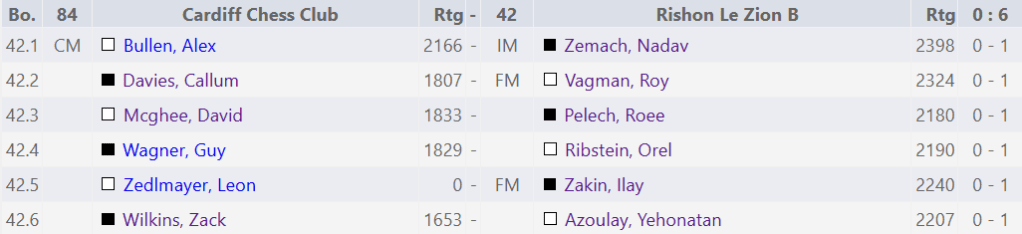Cardiff certainly weren’t aiming for a podium finish; instead, they set more modest goals. The primary objective was to secure at least one match win out of the seven matches, with an added hope that every player might achieve a non-loss result at some point in the tournament against these high-rated opponents.